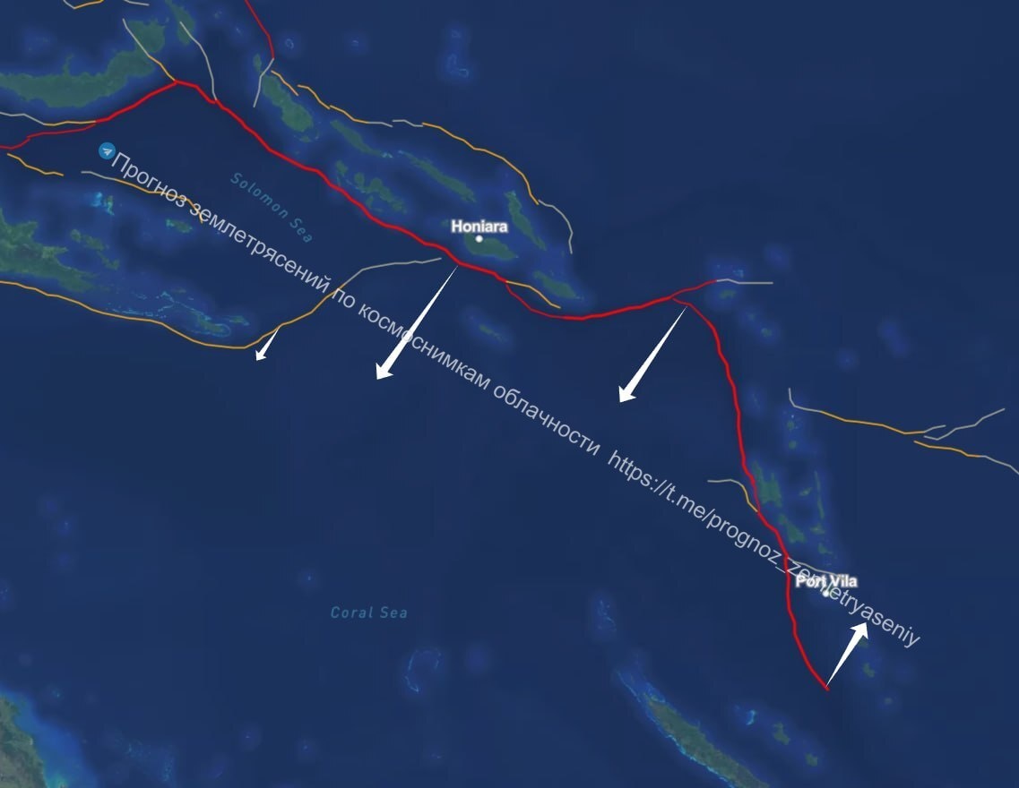 🚨 The Solomon Islands-Vanuatu zone again paints a picture of the M7+ level (a CSTI formed by the type of a dip in the clouds)
