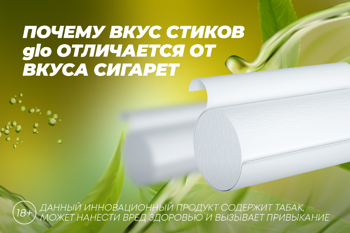 Опыт использования устройств нагревания табака совсем не похож на привычный процесс курения. Многие пользователи отмечают, что после стиков вкус сигарет воспринимается иначе – и этому есть объяснение. Дело в том, что принципы работы и сама конструкция таких продуктов полностью различаются. Сигарета – это табак, завернутый в бумагу, который при зажигании начинает гореть. При горении образуется дым, насыщенный продуктами сгорания. Устройство glo™ работает иначе: оно нагревает табак, а не сжигает его*. Это принципиально другой процесс, который влияет и на вкус, и на ощущения. При горении сигареты формируется табачный дым со всем комплексом веществ, которые возникают именно при высокой температуре пламени. В случае glo™ формируется аэрозоль, возникающий при нагревании табака до определённой температуры. Поскольку механизм отличается, изменяется и характер вкуса. Стик для glo™ – это не маленькая сигарета. Это конструкция, созданная специально под систему нагревания табака. Внутри – измельче