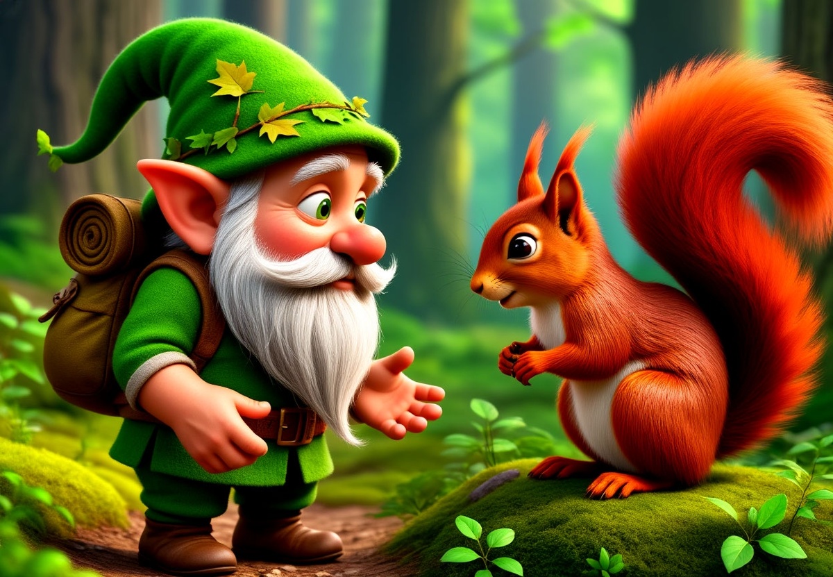 И они двинулись в путь. Бельчонок то прыгал с ветки на ветку, то шел рядом с Лесовичком по траве или лесной тропинке. По пути Лесовичок рассказывал интересные истории о лесных обитателях, показывал редкие растения и грибы, помогающие здоровью зверей.