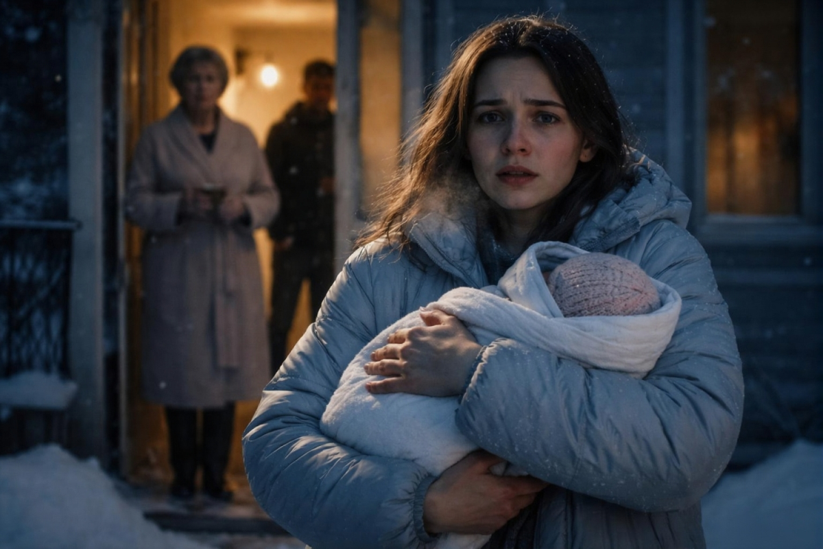 Она стояла на крыльце дома, в котором прожила три года, с новорожденной дочерью на руках — крошечной, только что выписанной, завернутой в больничное одеяло. Минус тридцать. Термометр на заборе не врал. Марина краем глаза видела, что красная полоска замерла у самого низа.
