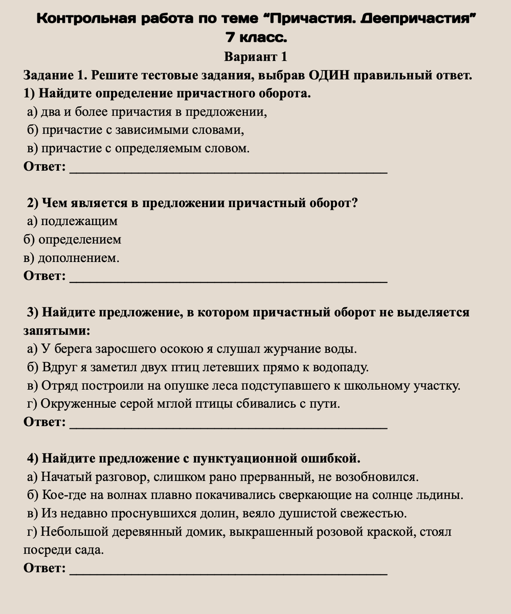 7 класс. Причастия и деепричастия. Контрольная работа