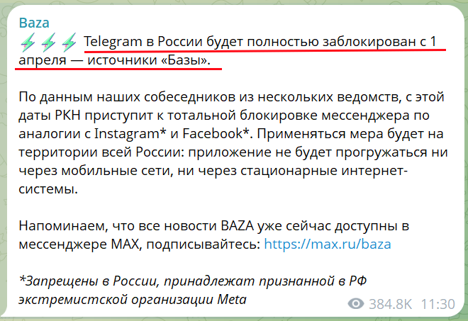 Дуров на контакт не пошёл: Телеграмм может быть заблокирован уже с 1 апреля 2026 года...