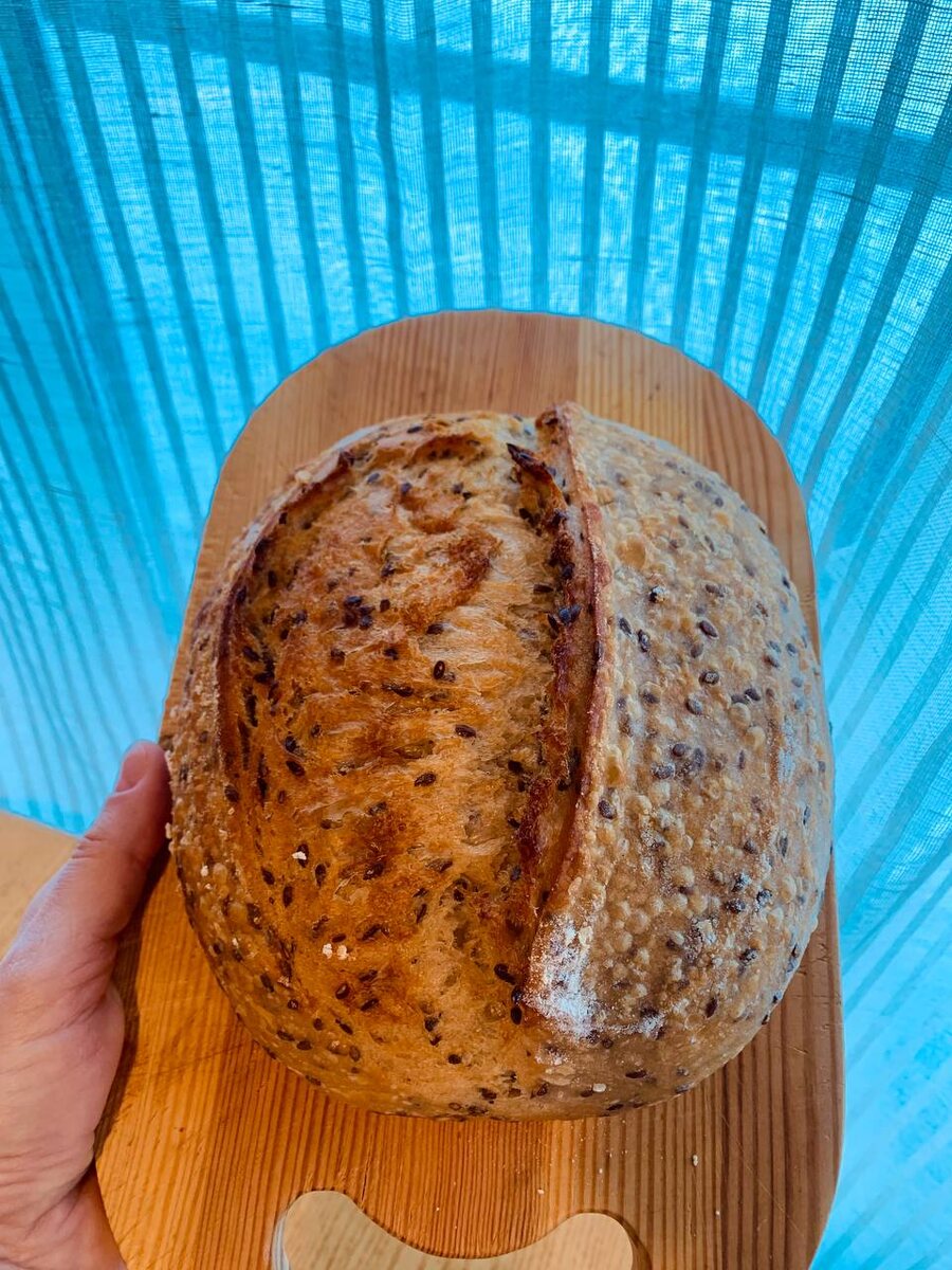 🌾 Этот хлеб родился в выходные. Хотелось пористый, ароматный, с ореховым послевкусием и сочным мякишем. Тот самый — «для масла и соли». Или для тёплого сыра. Было 200 г закваски пшеничной, ц/з, 1 сорт и высший Цельнозерновая - для глубины. 1 сорт — для характера. Высший — для баланса. Замочила лён на ночь. Добавила ложку мёда — для мягкой карамельной корки. 🌾Рецепт оставлю в комментариях.