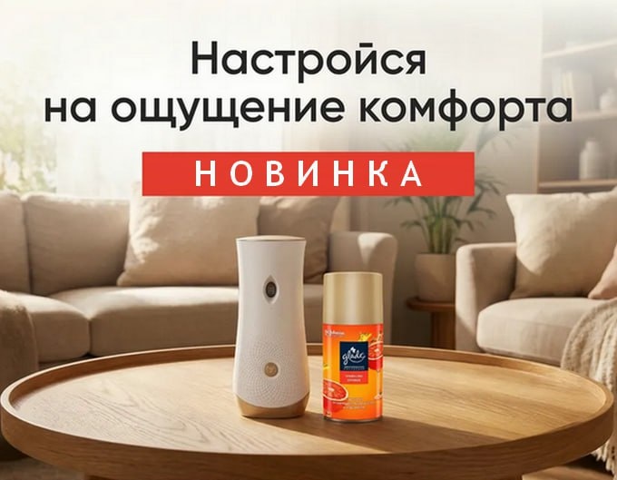 Попробуйте новые ароматы коллекции сменных аэрозольных баллонов для освежителя воздуха - GLADE AUTOMATIC: нотки цветущей мимозы и жасмина; искрящиеся цитрусовые оттенки с легкой карамельной сладостью; спелая малина и нежная роза. Весь ассортимент можно посмотреть на нашем сайте.