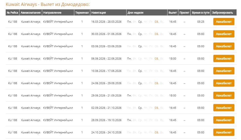 В расписании Домодедово заметили Kuwait Airways. В самом аэропорту каналу @premni уже прокомментировали обновку: это просто запрос слотов. Договор между воздушной гаванью и Kuwait Airways об обслуживании официально пока не подписан. Тем не менее можно представить примерную программу: рейсы между Москвой и Эль-Кувейтом заявлены 3 раза в неделю с 16 марта по 24 октября. Подробнее на ТурДоме. @tourdom