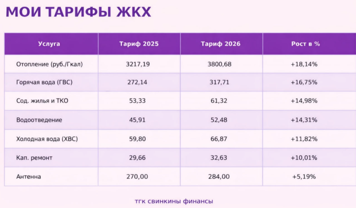 Вот уже несколько дней в соцсетях и блогах активно обсуждается то, как выросли тарифы за услуги ЖКХ. Видела и вообще сенсационные сообщения людей про то, как им пришли квитанции на суммы типа 15 тыс., что больше предыдущего показателя в раза в полтора. Думаю, что такие ужасы - все-таки единичные случаи. Но у меня тоже выросли числа в квитанции. Сначала я сравнила платежку за февраль и январь. Напомню, что там - начисления за прошлый месяц, хотя датировано текущим. Так вот, по сравнению с январем у меня весь рост объясняется бОльшим потреблением воды. Непонятно, правда, почему и я сама увеличила расход, и в графе «водоотведение» стало 7 куб.м вместо 1 куб. м., ведь я использовала воду как обычно. В феврале 2026 общая сумма в «квитке» - 6610 руб., в январе было 5199 руб, +27,3%. Тогда я решила проанализировать изменения за год, февраль к февралю. За февраль 2025 в платежке было 5427 руб., то есть за год - +21,8%. И тут уже явное влияние повышения тарифов. На картинке выше можете видеть
