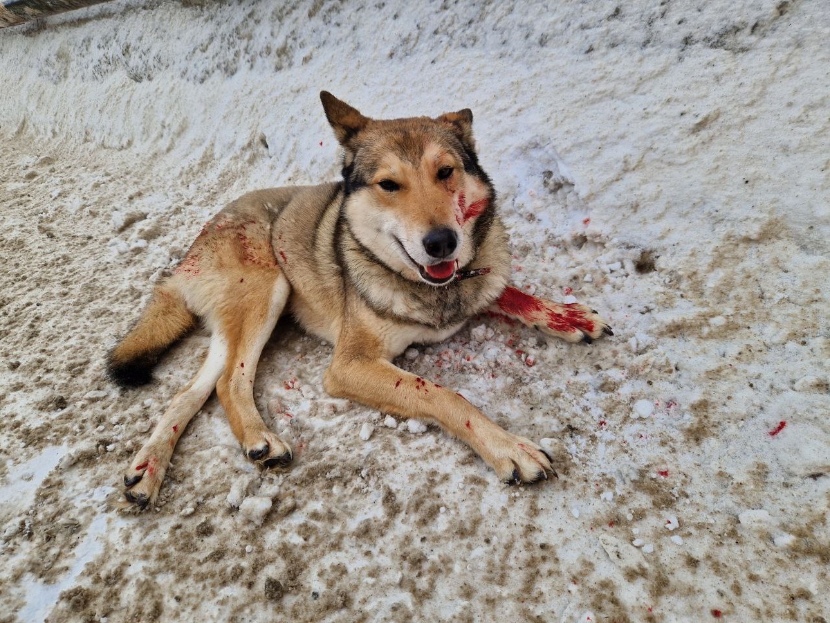 Sos❗️ нужна помощь. Собака сбита, не доезжая перекрёстка на Знаменское. Большая, высокая, на задние лапы не опирается, ошейник имеется