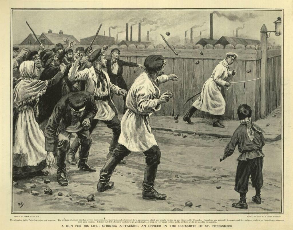 1890-е годы ознаменовались подъемом стачечного движения — и снова были изданы некоторые законы в защиту рабочих. Собственно, так все и шло. Каждый закон и каждый рубль зарплаты вырывались стачками, которые становились все ожесточеннее. В Лодзинской стачке в 1892 года принимали участие 30 тысяч человек, и закончилась она кровавым столкновением рабочих с войсками. В том же году на заводе Юза на юге России стачечники громили доменные печи и казармы, несколько человек были преданы военному суду и приговорено к смертной казни. В целом с 1895 по 1900 год число стачек ежегодно колебалось в пределах от 120 до 200 (по официальным данным) с числом участников от 30 до 60 тысяч человек.