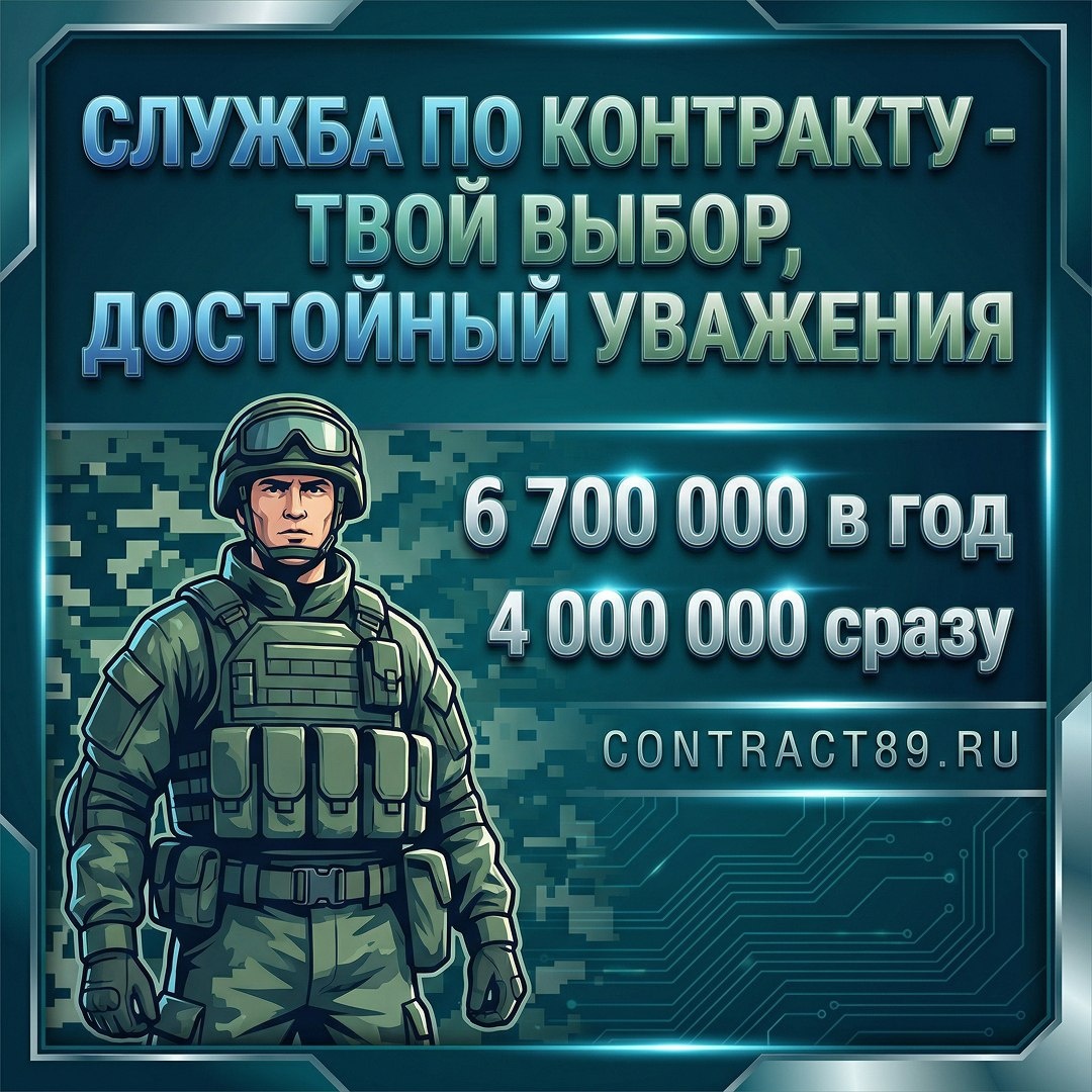 Государство ценит ваш выбор и предоставляет поддержку: ✔6 700 000 ₽ в год ✔4 000 000 ₽ единовременно ✔от 225 000 ₽ ежемесячно в зоне СВО ✔льготы и гарантии для всей семьи Подробнее: contract89.ru
