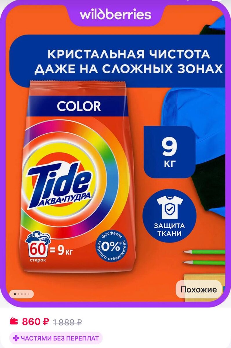 😀😀😀TIDE Порошок стиральный Автомат Color 60 стирок 9 кг