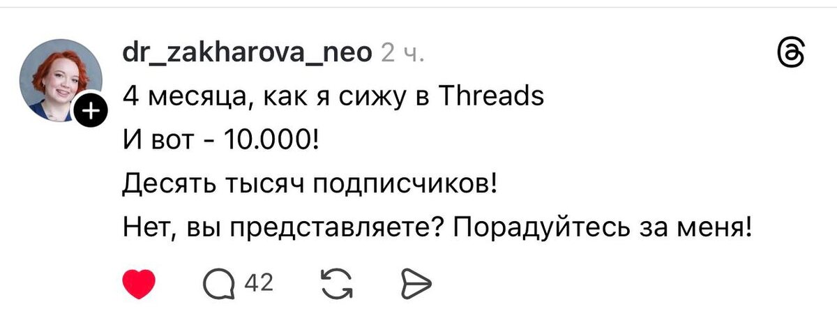? Хайп по условно новой соц.сети не унимается, решила вам разобрать на конкретном примере продвижение в Threads. Итак, врач-неонатолог активно продвигается в этой сети, понимая, что это один из этапов продвижения (смотрите скрины, приложила для наглядности). Что у неё есть: — чёткая аудитория (мамы 0–3 месяца) — понятная боль (сон, тревога, чувство вины) — конкретный результат (делаю ночи спокойнее) — ясный оффер (как записаться) Что она делает? 1️⃣ Очень понятная тема. Она пишет конкретно про первые месяцы жизни ребёнка. Собирая темы: сна, гв, тревоги мамы. Тут всегда есть что сказать) 2️⃣Контент не сложный, но полезный. Мифы — удобно их использовать всем. Непопулярные мнения — Тредс такое любит Конкретные фразы, которые цепляют. Пример: — Диеты кормящей матери не существует — Янтарные бусы опасны 3️⃣ Простая механика вовлечения. Напишите УХОД — пришлю чек-лист. Не усложняйте, делайте проще, усложнить всегда сможете 4️⃣ Она говорит языком своей аудитории. Очень важно — если