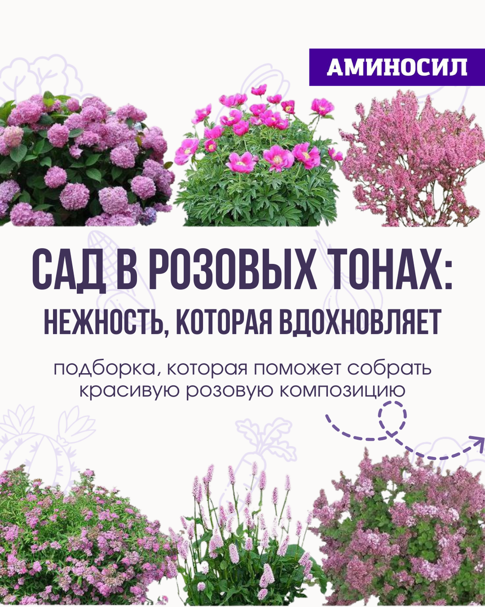 Если вы давно мечтали оформить сад в единой цветовой гамме, розовая палитра — нежное и универсальное решение 🌸 Она создаёт атмосферу уюта, романтики и гармонии, а главное — растения в этих оттенках прекрасно сочетаются и дополняют друг друга по форме, фактуре и срокам цветения. Вот подборка, которая поможет собрать красивую розовую композицию: 🌺 Гортензия крупнолистная (Hydrangea macrophylla) Идеальна для акцентных посадок. Крупные шаровидные соцветия создают объём и становятся центром клумбы. Хорошо смотрится как солитер или в компании с более «воздушными» кустарниками. 🌸 Пион лекарственный (Paeonia officinalis) Роскошное весенне-летнее цветение и насыщенный розовый оттенок. Пионы добавляют саду благородства и прекрасно сочетаются с гортензиями и спиреями. 🌿 Миндаль степной (Prunus tenella) Раннее цветение — настоящий розовый фейерверк весной. Подходит для создания живописных групп и бордюров. 🌷 Спирея японская ‘Little Princess’ (Spiraea japonica ‘Little Princess’) Компактный кус