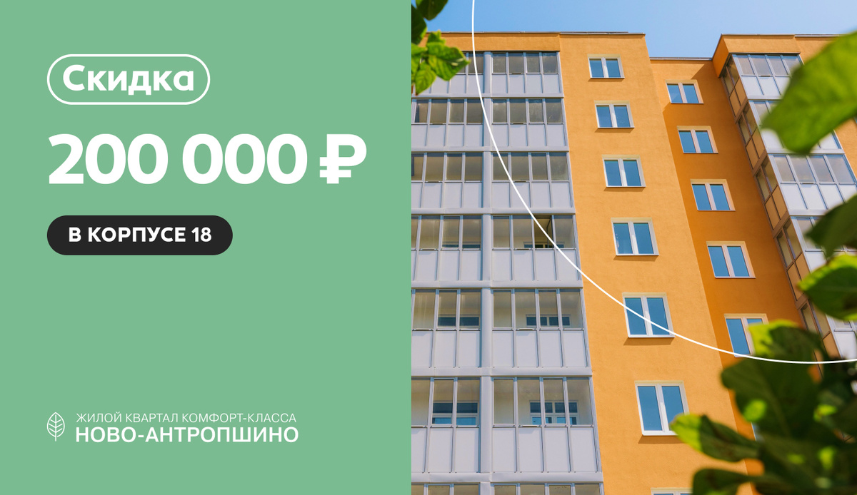 вы получаете минус 200 000 ₽ от стоимости квартиры с отделкой White box. В акции участвуют все квартиры с предчистовой отделкой в корпусе 18 Обращаем ваше внимание: — скидка не суммируется с другими акциями