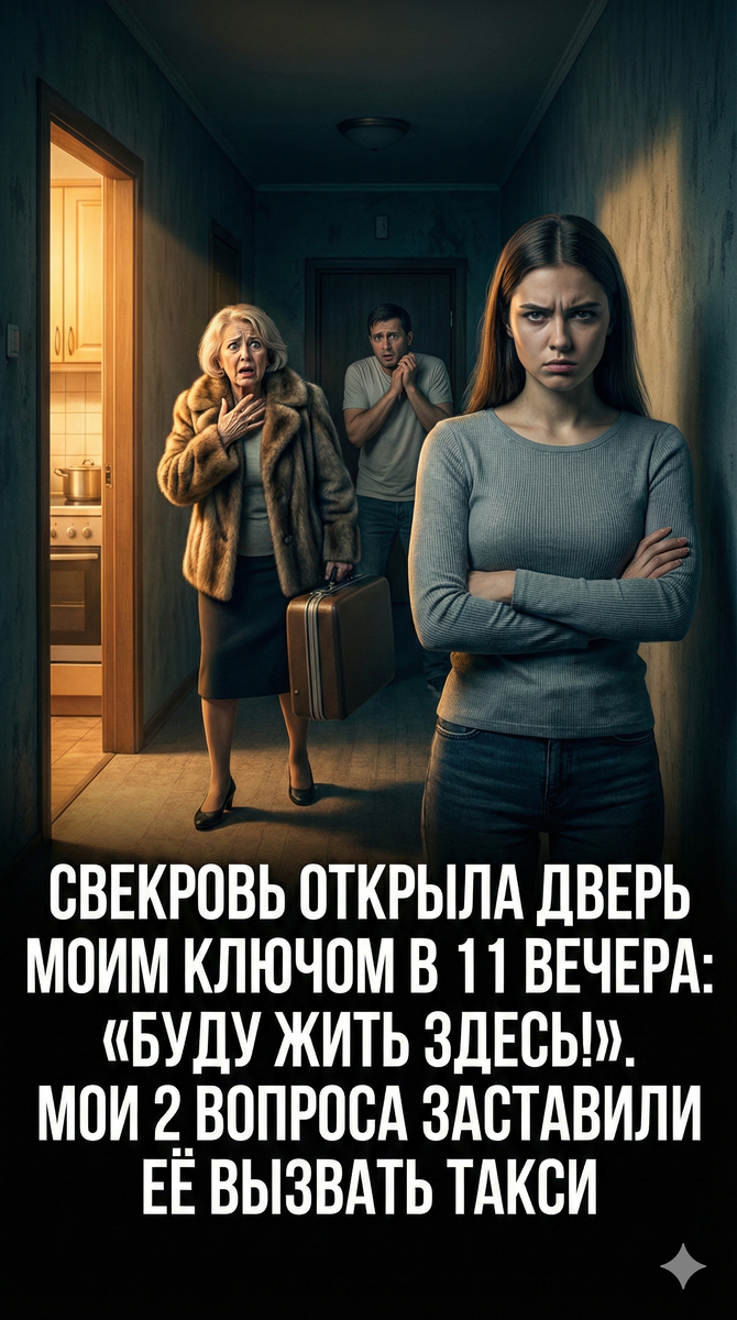Час ночи без копеек. Свекровь. Чемоданы. И ключ. Тот самый "потерянный" ключ, блестевший сейчас в её руке.