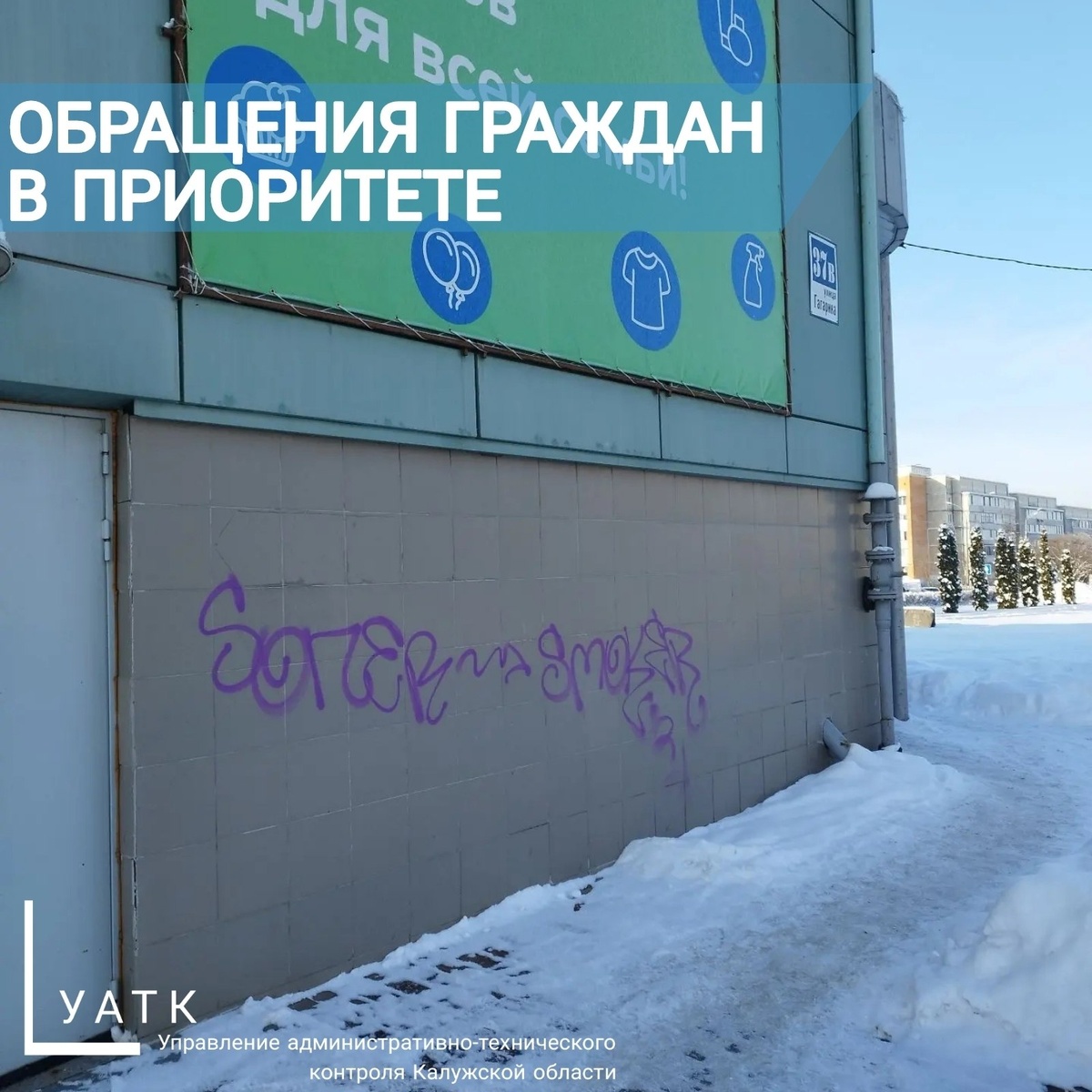 📢 Обращения граждан в приоритете В наше управление через платформу обратной связи поступил сигнал от обеспокоенных жителей Обнинска. Они сообщили о ненадлежащем состоянии фасада торгового комплекса «Жемчужина» на улице Гагарина, 37в. Что обнаружили наши сотрудники на месте? Факты подтвердились: фасад здания был испорчен несанкционированными надписями и граффити. Это прямое нарушение статьи 1.8 Закона Калужской области № 122-ОЗ, регулирующего содержание фасадов и правила благоустройства. Собственнику указали на необходимость устранить нарушение. Граффити закрашено, фасад приведён в порядок. 📍 Обратиться в органы власти можно через Платформу обратной связи (ПОС). В меню группы нашего управления «ВКонтакте» есть специальные виджеты для этого. Для удобства вы можете скачать мобильное приложение: RuStore: clck.ru/32jQQi AppStore: clck.ru/VGfWQ Google Play: clck.ru/VGfcN #УАТК40 #РешаемВместе40