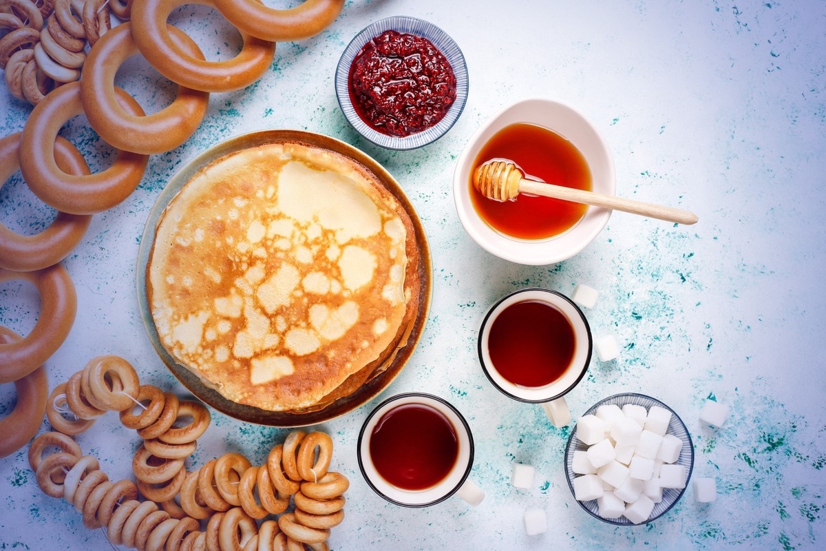 В самом разгаре Масленичная неделя. Этот славянский традиционный праздник связан со встречей весны, главным его атрибутом во все времена считаются блины, по форме олицетворяющие солнце. А завершается неделя проводами зимы и веселым сжиганием чучела во время народных гуляний. Масленичная неделя – отличный повод встретиться с родными или сплотиться коллективом в офисе за поеданием ароматных блинов. В нашей статьей предложим несколько вариантов, как отметить Масленицу. Если корпоратив несет большие затраты для компании, то формат блинного кофе-брейка окажется вполне бюджетным. Поскольку праздник длится всю неделю, можно договориться с коллегами приносить каждый день блины с разными начинками. А разбавить поедание лакомств весельем помогут разного рода активности, например, традиционные игры в ручеек, жмурки или забавные конкурсы, например, кто больше съест блинов за минуту. В детских садах, школах и институтах принято посвящать детей в народные традиции и прививать уважение к ним, поэтому
