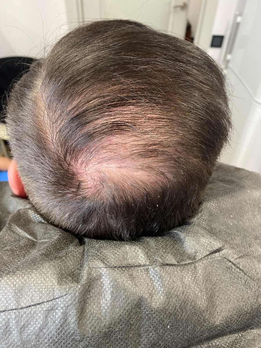 Сделали пересадку волос, но просветы остались? Это частая история после трансплантации, поскольку средняя плотность при такой операции - 60-80 волос на 1 кв.см, а вот природная густота -это 200-250 волос на 1 кв.см. Чувствуете разницу? Нарушать протокол пересадки волос опасно, так как это может привести к нарушению кровоснабжения участка кожи, к некрозу и рубцам. Что делать с этими просветами? Один из способов это скорректировать - сделать процедуру трихопигментации. Вот такая ситуация была у молодого человека после достаточно успешной пересадки. Контраст между кожей головы и волосами увеличивался за счет того, что волосы регулярно окрашивались в более темный цвет, чем природный оттенок. Работа с кожей после пересадки всегда сложнее, чем с нетронутой панчем. Мы сделали 4 процедуры трихопигментации, обсудили нюансы в стрижке и цвете волос. На время сессий волосы не подвергались окрашиванию, что дало очень классный результат. Визуально волос стало больше, контраст за счет трихопигментаци
