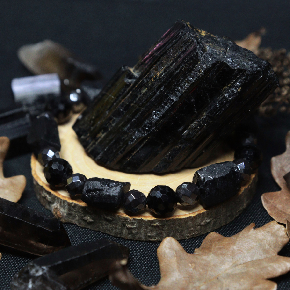 что делает камни интересными и такими приятными на ощупь. Браслет для тех, кто живет в гармонии со своей теневой стороной, принял и понял ее, а, может быть, только стремится к этому. Здесь Тьма - это не зло или опасность, а то, что приятно обволакивает, оберегает, дарит тишину, покой и надежную опору. Если при взгляде на этот браслет вы испытываете приятные ощущения и даже комфорт, значит, он точно вам подойдет. Черный турмалин называют Шерл, по названию города в Германии, где он впервые был обнаружен. Шерл - мощный камень, он оберегает от негатива, злых чар, сглаза и проклятий. Черный турмалин усиливает концентрацию, избавляет от страхов и сомнений, укрепляет тело и д