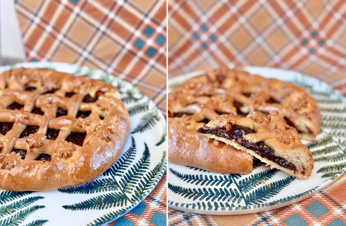 Этот рецепт пирога с черносливом 1907 года из “Записок по курсу кулинарной школы” от “Общества распространения между образованными женщинами практических знаний” – поверг меня в шок и такого давно не случалось. И дело тут вот в чем… Это 100% постный, веганский пирог на дрожжевом тесте. И я бы в жизни не подумала, что в 1900 году использовалось в кулинарии… кокосовое масло! Причем, что интересно, в этом издании 1907 года – рецепт идет с кокосовым маслом. В издании 1902 года – его нет вообще. В издании 1904 года – он идет на горчичном и подсолнечном масле. То есть рецептура от издания к изданию менялась. Но мне первой в руки попалась именно 1907 года и я его приготовила. И, что я вам скажу – это совершеннейший восторг. Не ожидала. Мало того, что не ожидала увидеть кокосовое масло, так не ожидала настолько волшебной текстуры: тесто супер нежное, очень мягкое, мякиш эластичный, пушистый; сжимается и разжимается идеально, как губка. И, в добавок ко всему, это невероятно вкусный пирог сам п
