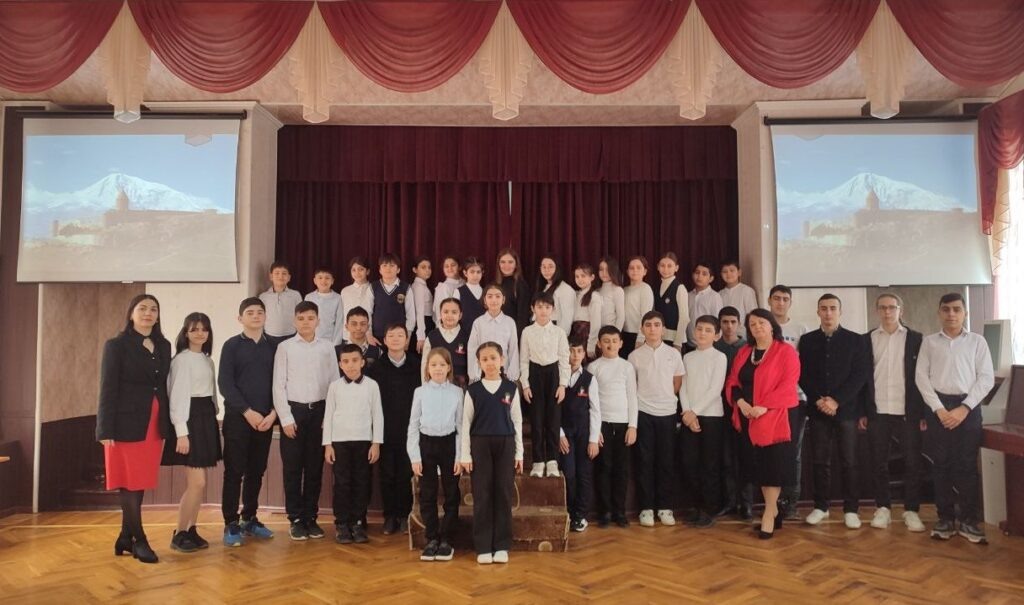 Традиционная школьная конференция, посвященная языку, в этом году включала доклады о роли Александра Мясникяна в истории Армении (ученицы 8-го класса «Б» Сара Акопджанян и Ани Ордян) и о сохранении армянских традиций (ученица 10-го класса Ангелина Буйнатян).