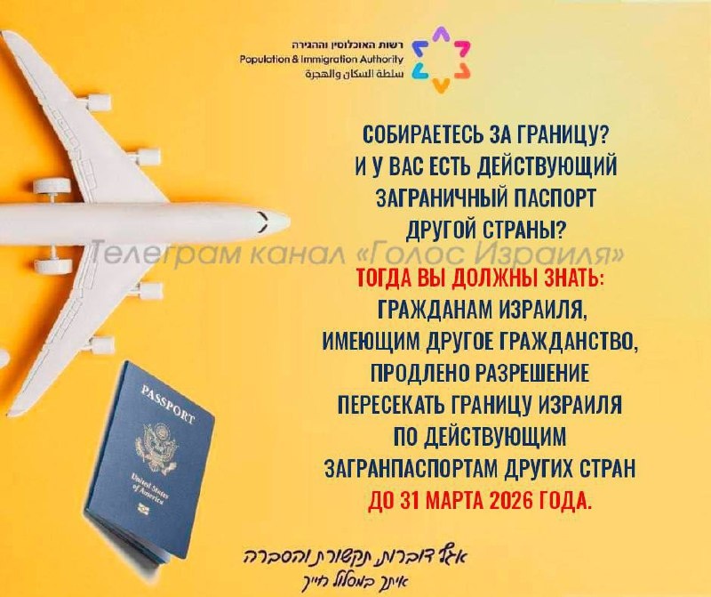 09.2026. При себе нужно иметь израильский загранпаспорт, даже если срок действия истек, или теудат зеут. ____________ 🎙Будь в курсе событий 🇮🇱 Подпишись на «Голос Израиля»