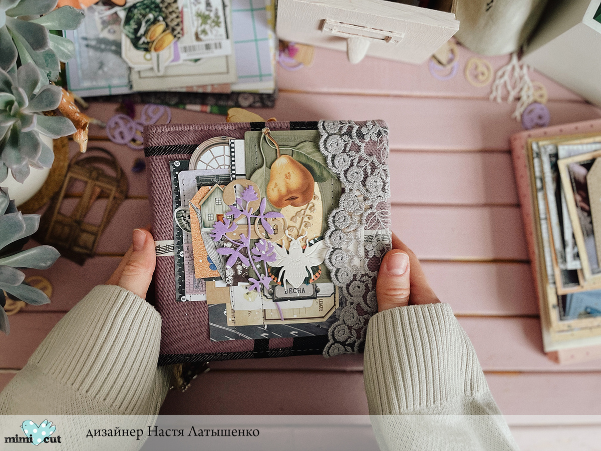 Привет, почти весенние! С вами Настя Тимуд со своим первым вдохновляющим постом специально для Мимикат! Я уже скучала по вам!)) Ждете март? Я уже очень, поэтому у меня сотворился вот такой вот весенний альбомчик. Люблю классические переплеты, сложные фактуры, ножи Мимикат). Давайте вместе посмотрим, что у меня получилось, ведь наконец-то мой кардсток пошел в дело и больше не будет лежать неприметной стопочкой в моей мастерской). Я сделала небольшой альбомчик, в нем стал акцентным мой любимый фиолетовый цвет, разбавила его другими более приглушенными цветами, добавила брызгов, вырубки, разных высечек, немного кружева и случилось то самое "Мне нравится!")) Ура! На обложке любимейшая белая пчелка, так ей идет этот белый матовый цвет, сделалась она из ножичка "Пчёлы Персефоны" Далее в дело пошел ножик "Клевер" и цифры "26", припрятанные за клевером, сделаны из ножей "Гигантские цифры" и "Круглая дата" и маленький прелестный ландыш "Светлого мая привет". Вот такой он в разрезе)), красивень
