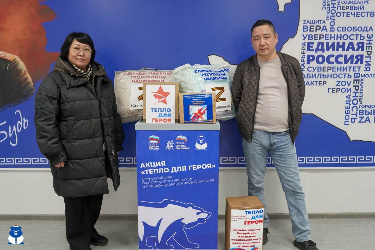 ! В Штабе общественной поддержки ЕР продолжается акция «Тепло для героя», направленная на поддержку наших защитников, находящихся далеко от дома, и их семей. 🔹 К акции присоединились: - Региональная служба по тарифам Республики Калмыкия; - Служба закупок Республики Калмыкия; - Филиал «Калмкасивод» ФГБВУ «Центррегионводхоз». Вы можете принести теплые вещи, бытовую химию, продукты с долгим сроком хранения, медикаменты и иные вещи, которые необходимы нашим ребятам до 23 февраля по адресу: Ул. Пушкина, д. 1. #Штаб_Калмыкия #ТеплоДляГероя