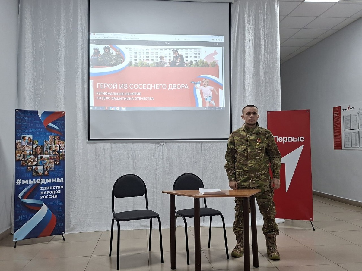 Василий Левченко — выпускник школы, служит в зоне специальной военной операции, сейчас находится в краткосрочном отпуске. Василий Юрьевич рассказал школьникам о своем пути в армию, значении спецоперации и первых испытаниях, говорил о ценности жизни и необходимости службы в армии. Отметил, какими качествами должен обладать будущий защитник, рассказал о мужской дружбе и трудностях, которые преодолевают солдаты. Василий Левченко дал ребятам наказ: слушаться учителей и родителей, хорошо учиться, заниматься спортом, не зависеть от социальных сетей и стремиться к своим целям.