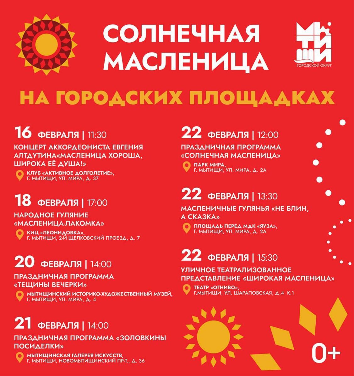 🛒 Полное расписание мероприятий Масленицы в Мытищах 🥞