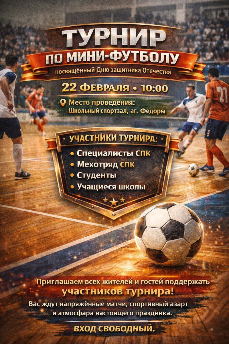 В аг. Федоры 22 февраля пройдет турнир по мини-футболу.