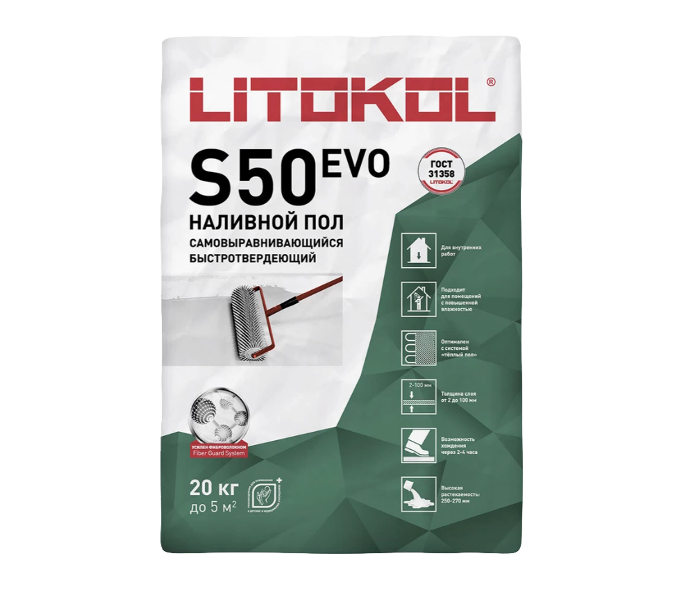 Наливной пол S50 — флагманский продукт Litokol в линейке ровнителей для пола. Он разработан с учётом реальных условий строительства и отделки: неидеальные основания, сжатые сроки, разные виды финишных покрытий.