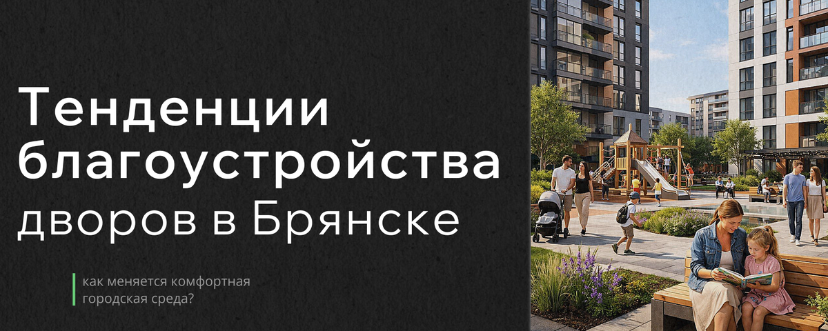 Благоустройство дворов Брянска, современные новостройки Брянска, комфортная среда жилого комплекса, детские и спортивные площадки, озеленение территории ЖК, парковка во дворе, безбарьерная среда — именно эти параметры сегодня становятся ключевыми при выборе квартиры. Рынок недвижимости города активно трансформируется: покупатели оценивают не только планировки и цену за квадратный метр, но и качество придомовой территории.