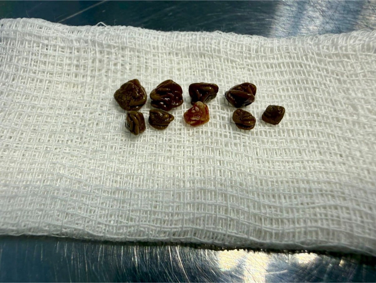 Это камни, удалённые из мочевого пузыря и мочеиспускательного канала йоркширского терьера 😯