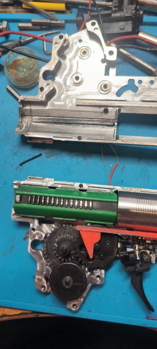 Привод — это механизм, эффективность и надежность которого напрямую зависят от качества и правильного подбора его комплектующих. 🔧 Например, на данном экземпляре была установлена очень жесткая резинка хопапа (≈80°), которая для нашего климата не подходит, так как слишком жёсткая, также у неё достаточно толстые губки. Итог: при игре в +5 шар заклинил в резинке хопапа, а большой объем воздуха в цилиндре не позволил поршню уйти в нулевую точку. Поршень начал задирать секторной шестерней, пошел износ обоих элементов, стружка от них полетела в ЦПГ и по итогу утащила за собой ещё и всю ЦПГ. С заботой о вашем оборудовании, ТАИ.Мастерская 💚