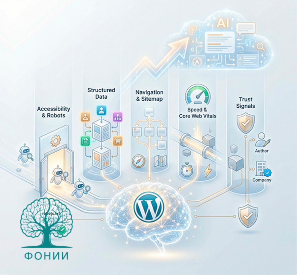 Полная статья на сайте: https://generative-optimization.ru/geo-prodvizhenie-sayta-wordpress Ваш сайт на WordPress может стать невидимкой для ChatGPT. И вот почему 🤖 Давайте честно обсудим одну вещь. Мы привыкли бороться за позиции в Google. Мы закупаем ссылки, пишем SEO-статьи, проверяем позиции. Но мир изменился, пока мы были заняты. Ваши потенциальные клиенты — особенно в B2B — уже не гуглят «лучший CRM-интегратор». Они спрашивают об этом у нейросетей. «Алиса, подбери подрядчика для внедрения 1С». «ChatGPT, сравни три лучших сервиса рассылок». И если нейросеть не может прочитать ваш сайт или не доверяет ему — вас в этом списке не будет. Вообще. Это называется GEO (Generative Engine Optimization). И это новая реальность, в которой мы все уже живем. Мы в ФОНИИ проанализировали десятки сайтов на WordPress и поняли, что большинство из них технически блокируют свое будущее. ВОТ 5 ПРИЧИН, ПОЧЕМУ ВАШ WORDPRESS ТЕРЯЕТ AI-ТРАФИК 📉 1️⃣ ВЫ САМИ ЗАКРЫЛИ ДВЕРЬ Многие админы по старой па