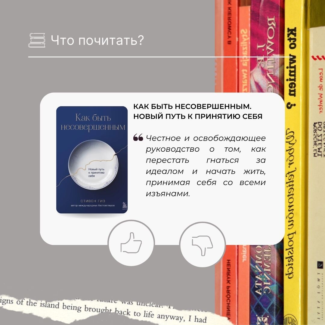Стивен Гиз — психолог и практик, который многие годы помогает людям находить гармонию с собой. В книге Как быть несовершенным. Новый путь к принятию себя он предлагает не абстрактные теории, а реальные инструменты, позволяющие перестать стремиться к недостижимому идеалу и начать жить более осознанно и спокойно. Книга будет полезна всем, кто устал от внутреннего давления и перфекционизма и хочет научиться принимать себя целиком, со всеми слабостями и противоречиями, а также стремится к личностному росту без разрушительной самокритики. Гиз исследует психологические механизмы перфекционизма, страха оценки и внутренней критики, показывает, как стандарты «идеальной жизни» формируют общество и почему попытки им соответствовать часто приводят к выгоранию и чувству пустоты. Через примеры из терапии, истории клиентов и практические упражнения автор демонстрирует, как шаг за шагом отпустить навязанные идеалы, научиться принимать ограничения и строить жизнь, основанную на собственных ценностях,