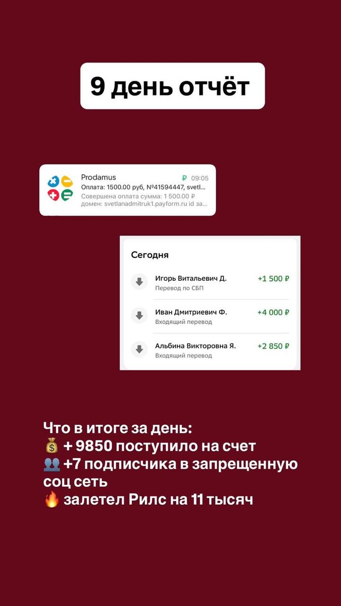 Я начала эксперимент. 14 дней наблюдения за тем, что произойдет, если соединить: — работу с телом — мышлением — энергией — практику самопрограммирования Без ожиданий - просто наблюдаю изменения в состоянии и реальности. Что было сделано сегодня: ✔️ Медитации продажи ✔️практика дневник самопрограммирования ✔️работа с убеждением чувство долга (кому то что-то всегда должна) Что в итоге за день: 💰 + 9850 поступило на счет 👥 +7 подписчика в запрещенную соц сеть 🔥 залетел Рилс на 11 тысяч Продолжаю эксперимент 🙂