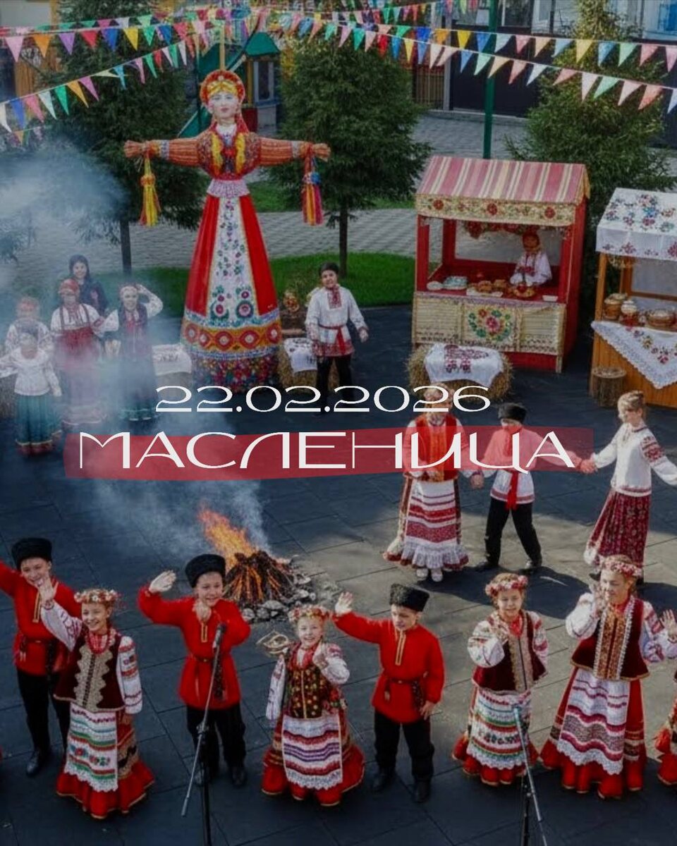☀️ПРИГЛАШАЕМ ВСЕХ☀️ 14:00 - фото зона, чучело Масленицы 15:00 - 15:45 - Концертная программа - выступление коллектива «Кубаночка» 16:00 - 17:15 - Народное гуляние, где вас ждут: •Молодецкие забавы •Русские народные игры и конкурсы •Хороводы •Тематические призы и подарки А также вкусные угощения: • Ароматный чай •Блины с пылу с жару, со сметаной и вареньем. •Горячительный напиток для поднятия настроения. 17:15 - обряд сжигания чучела Масленицы на берегу реки.