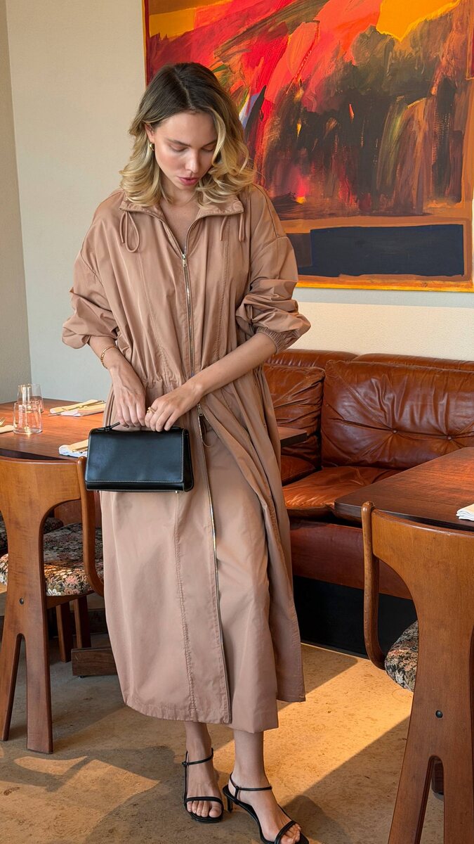 Для этих изделий мы выбрали воздушную тафту с шелком — такую же, как используем в текстильных моделях. Ткань приятно шуршит и деликатно поблескивает в складках. Платье создает женственный хрупкий силуэт благодаря глубокому вырезу и крою по фигуре. Ветровка не стесняет движений, несмотря на длину макси, а ее форму можно менять в течение дня: мы добавили кулиски на талии, снизу и в воротнике. Больше идей для ваших образов — в «историях» в приложении 12 STOREEZ. Его можно установить по ссылке (раздел доступен в версии для iOS) и искать вдохновение на новые эксперименты в гардеробе 🤍 🤍12 STOREEZ