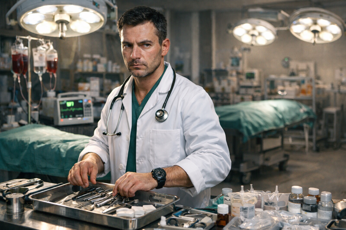 Коллега хлопнул Рафаэля по плечу и побежал к борту, где Серго уже загружал укладки в салон вертолета. Через минуту турбины взвыли сильнее, лопасти завертелись быстрее, и тяжелая машина, подняв тучу пыли и песка, оторвалась от земли. Рафаэль, щурясь, проводил взглядом вертолет, уходящий на север, в сторону рассвета, туда, где еще час назад рвались гранаты и свистели пули. Потом глубоко вздохнул, развернулся и быстрым шагом направился в медчасть. Мысли уже четко выстроились в план: проверить наличие крови, разложить инструменты, подготовить два стола, убедиться, что хватит медикаментов.