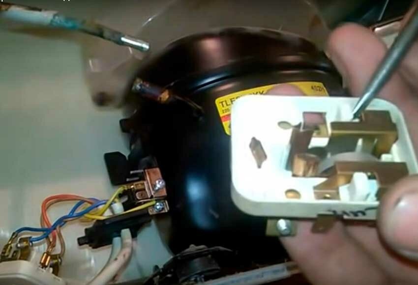 - Снимите реле (обычно оно находится на компрессоре в черной коробочке).