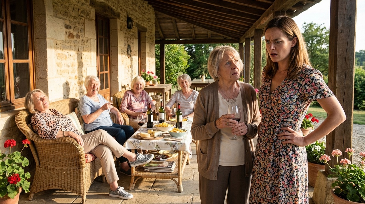 Сидит Галина Петровна и три её подруги. На столе — коньяк,