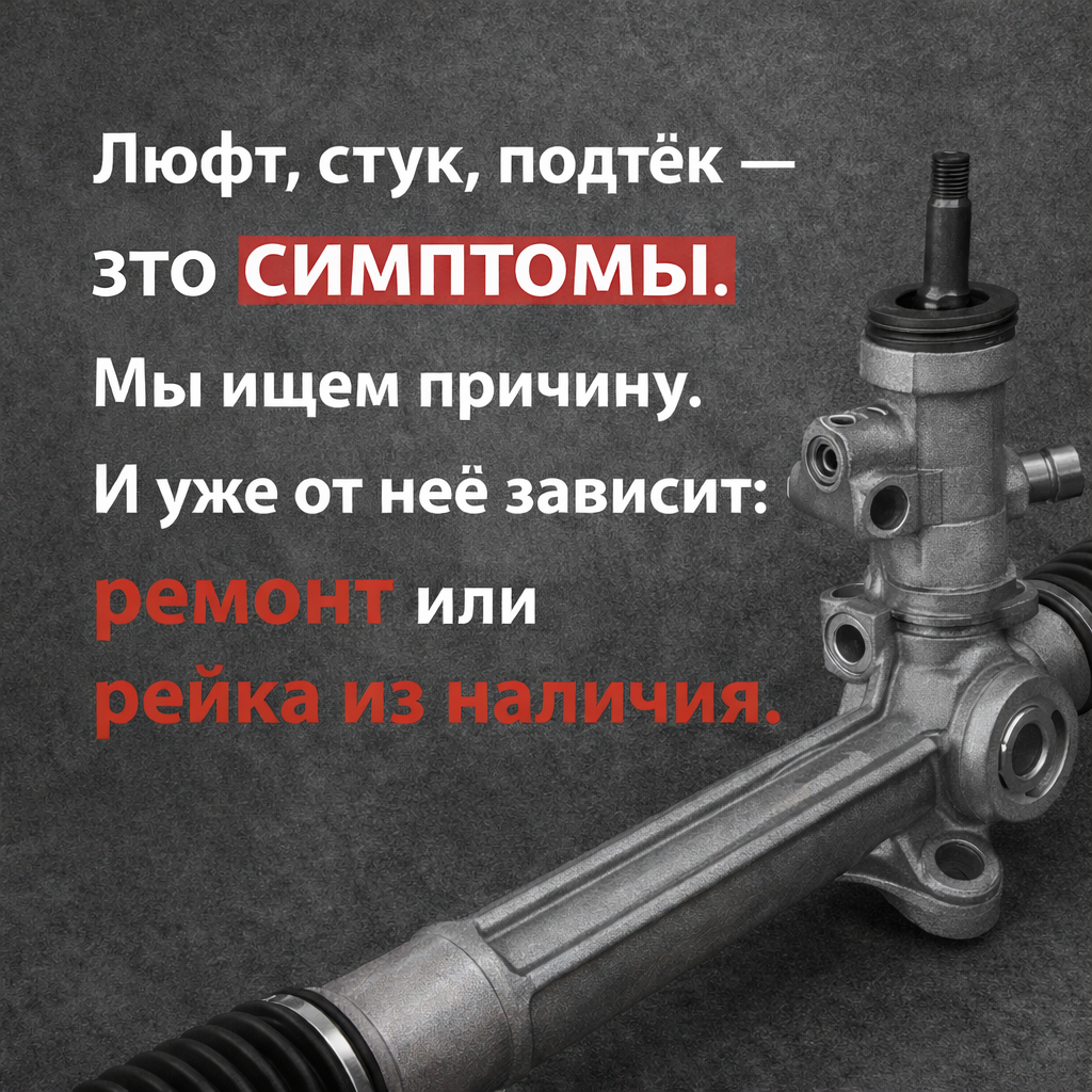 Почему важно искать причину, а не просто «что-то поменять» Когда в рулевом появляется люфт, при повороте слышен стук или под машиной появляются капли жидкости — большинство думает одинаково: