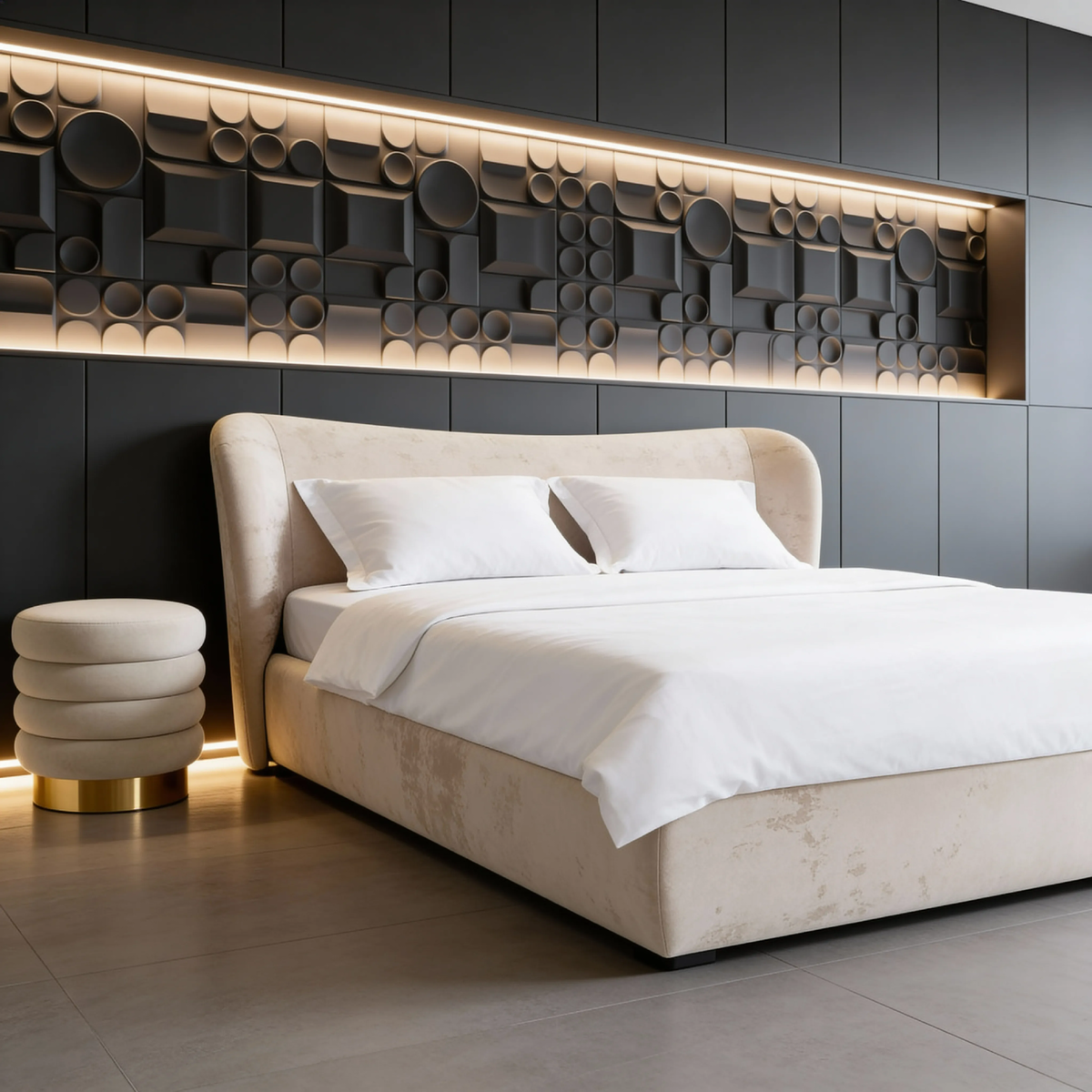 Кровать Энигма создана для тех, кто ценит в интерьере сочетание эстетики и функциональности. Отличительная особенность — изголовье, которое по форме напоминает силуэт лепестка . Кровать оснащена инновационным механизмом «касатка» для легкого доступа к отсеку белья.