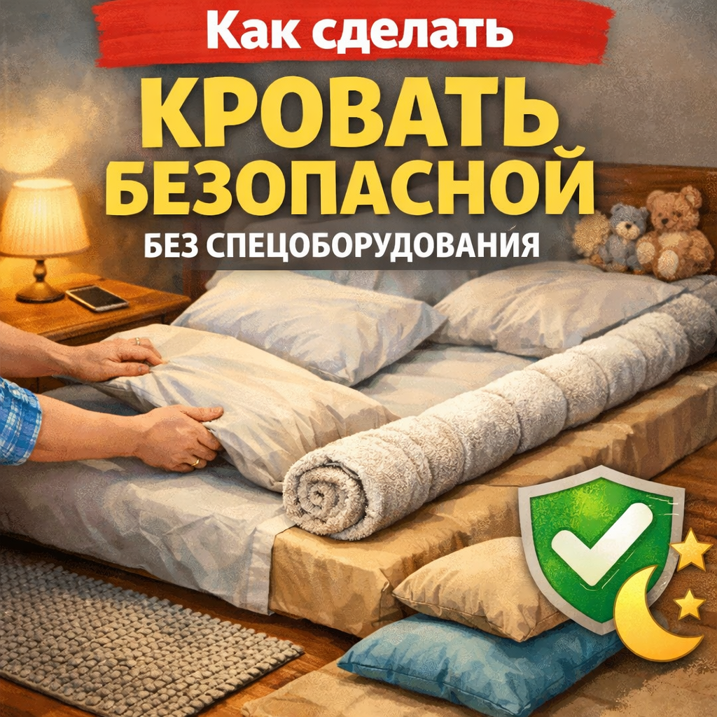 Но на практике 80% безопасности можно организовать обычными домашними средствами. Важно не оборудование. Важно логика. Самая частая травма — падение с высоты.