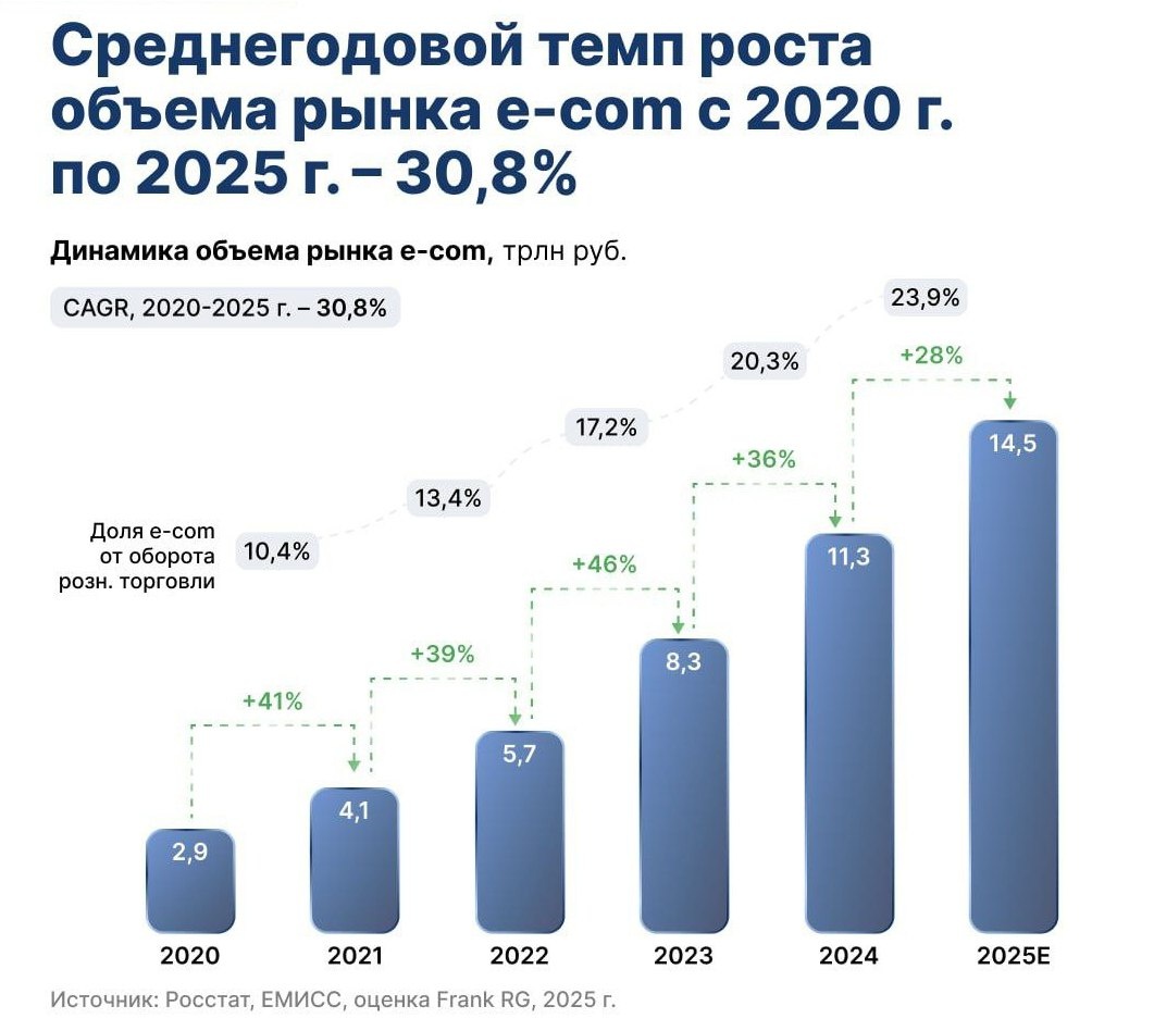 Раньше было очень много рекламы: "Начни свой бизнес на WB или Ozon". Заметили, что она перестала мелькать? Всё просто: рынок электронной торговли после бурного роста в 2020–2025 гг. (среднегодовой темп CARG ~30%) начал замедляться из-за охлаждения экономики и исчерпания свободных ниш. Около 64% всех онлайн‑продаж приходится на маркетплейсы (МП), из которых ~80% (по разным оценкам: 77–86%) контролируют Wildberries и Ozon. Пользуясь своим положением, площадки уже 1,5 года повышают комиссии, готовясь к новому закону о платформенной экономике (с 1 октября 2026 года). Теперь они делают ставку не на привлечение новичков, а на прибыль. Селлерам становится всё сложнее работать. Комиссии растут; налоги ужесточаются, льготы сокращаются; маркетплейсы активно продвигают свои товары (с ними непросто конкурировать); участники из Китая и стран СНГ продают дешевле за счёт меньших затрат и льготных условий на площадках. Из‑за этого маркетплейсы всё больше подходят для среднего и крупного бизнеса: