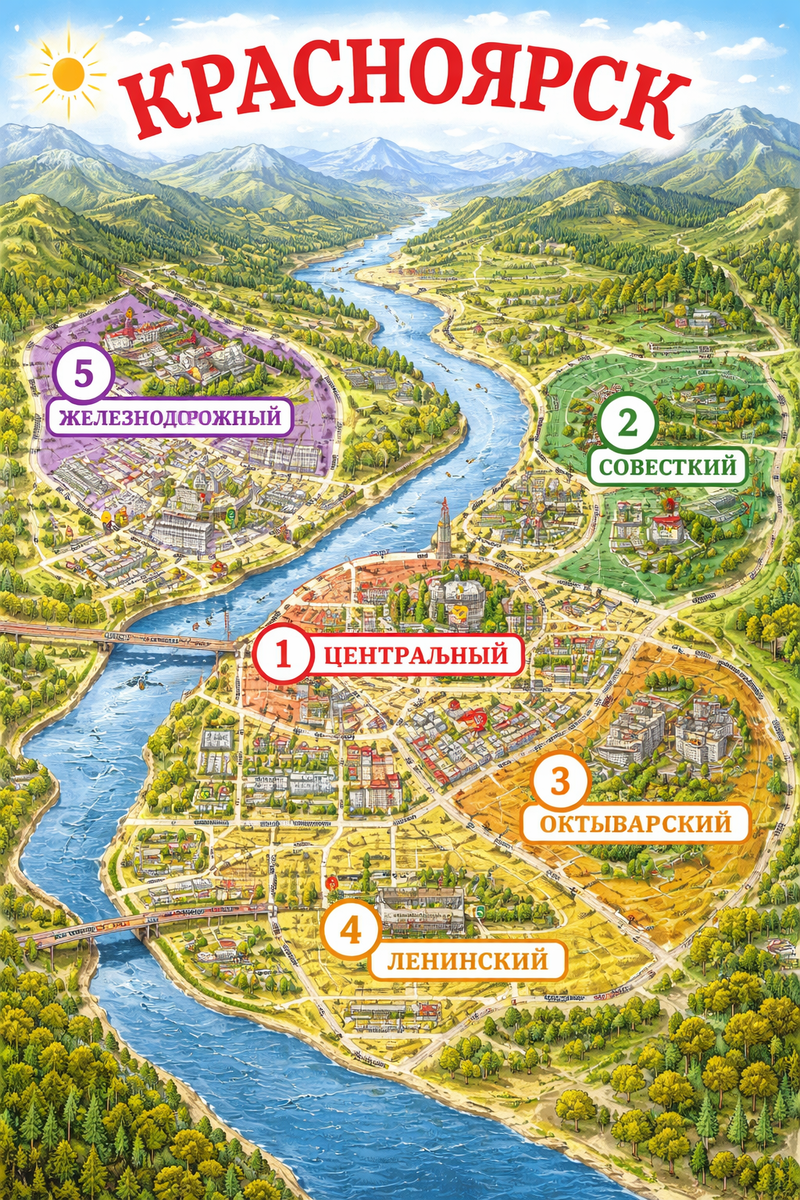 Красноярск — город не очень большой, но район от района отличается как день и ночь. В центре красиво, но дорого и шумно. В советских районах спокойно, но серо. На окраинах дешево, но далеко. Я прошелся по всем районам и собрал полный гид: где что есть, куда ехать, кому какой район подойдет. С адресами, контактами и честными минусами.