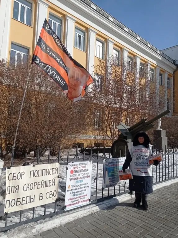 Чита был проведен одиночный пикет. Раздавались газеты <Национальный курс Суверенитет>, листовки. Собирались подписи граждан присоединившихся к акции 1 000 000 истцов в иске по отмене незаконных решений Горбачева и за предоставление чрезвычайных полномочий В.В.Путину для Спасения России. Велись беседы с гражданами. Присоединиться к коллективному иску можно по ссылке: https://forms.yandex.ru/u/628d3e0fc7c13a07c038046a/ Ответственная: Ирина Лукьянова