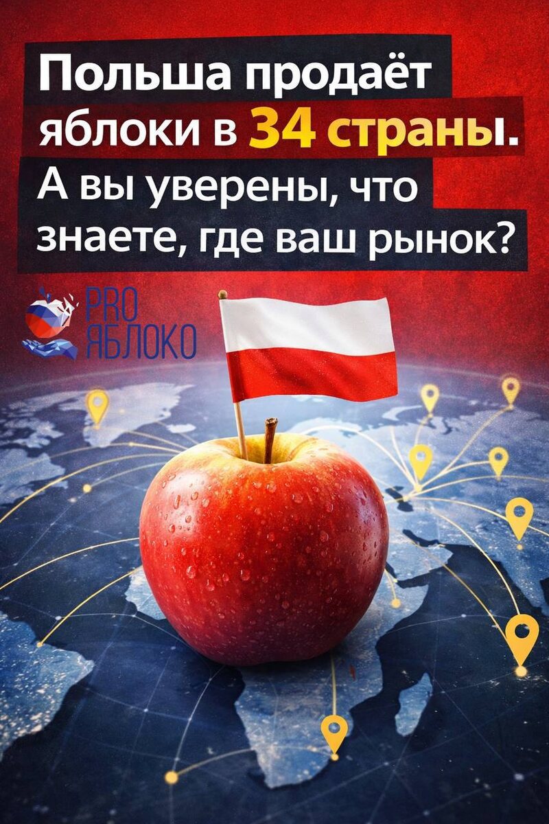В январе 2026 года экспорт польских яблок стал рекордным по сравнению с тем же периодом прошлых лет 📈 Поставки — сразу в 34 страны. 🌍 Ключевые направления экспорта: • Египет • Казахстан и страны Центральной Азии • Индия • Беларусь и Монголия • рынки Ближнего Востока и Северной Африки Но есть нюанс 👇 Объёмы снизились к декабрю, партии стали мельче, а давление на цену — выше. На складах при этом — более 1,2 млн тонн яблок. ⚠️ Что это значит для российских производителей: рынок становится жёстче. Покупатель ждёт не просто яблоко, а: • понятную цену 💰 • стабильные объёмы 📦 • чёткие условия 📄 • готовность к переговорам 🤝 🍏 Польша — наш прямой ориентир и конкурент на рынках Ближнего Востока, СНГ и Азии. Если даже при рекордном экспорте там продавать становится сложнее — значит, готовиться нужно уже сейчас. 📍 PRO ЯБЛОКО 2026 🗓 9–11 июня 📌 Минеральные Воды PRO ЯБЛОКО — для тех, кто принимает решения на основе рынка, а не интуиции. Источник: https://www.sadyogrody.pl/handel_i_