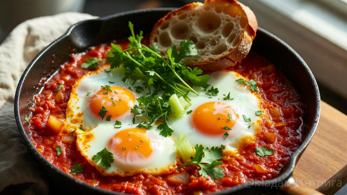 Представьте себе: субботнее утро, за окном ещё серенько и сонно, а на плите уже тихонько булькает сковорода с густым томатным соусом, по кухне плывёт пряный аромат зиры и копчёной паприки, и в горячей овощной подушке томятся яйца с нежнейшим белком. Муж выходит на кухню, втягивает носом воздух и сразу улыбается. Дети прибегают с горящими глазами и тащат к столу хлеб — потому что шакшуку без хлеба есть просто невозможно, её нужно вымакивать до последней капельки.